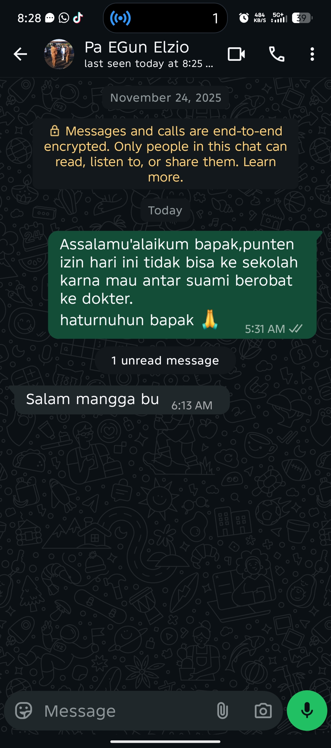 | 2026-02-03 | Ela Silfiana | Selasa | Jam 5 | X TKI B | Izin Kepsek | Lihat |