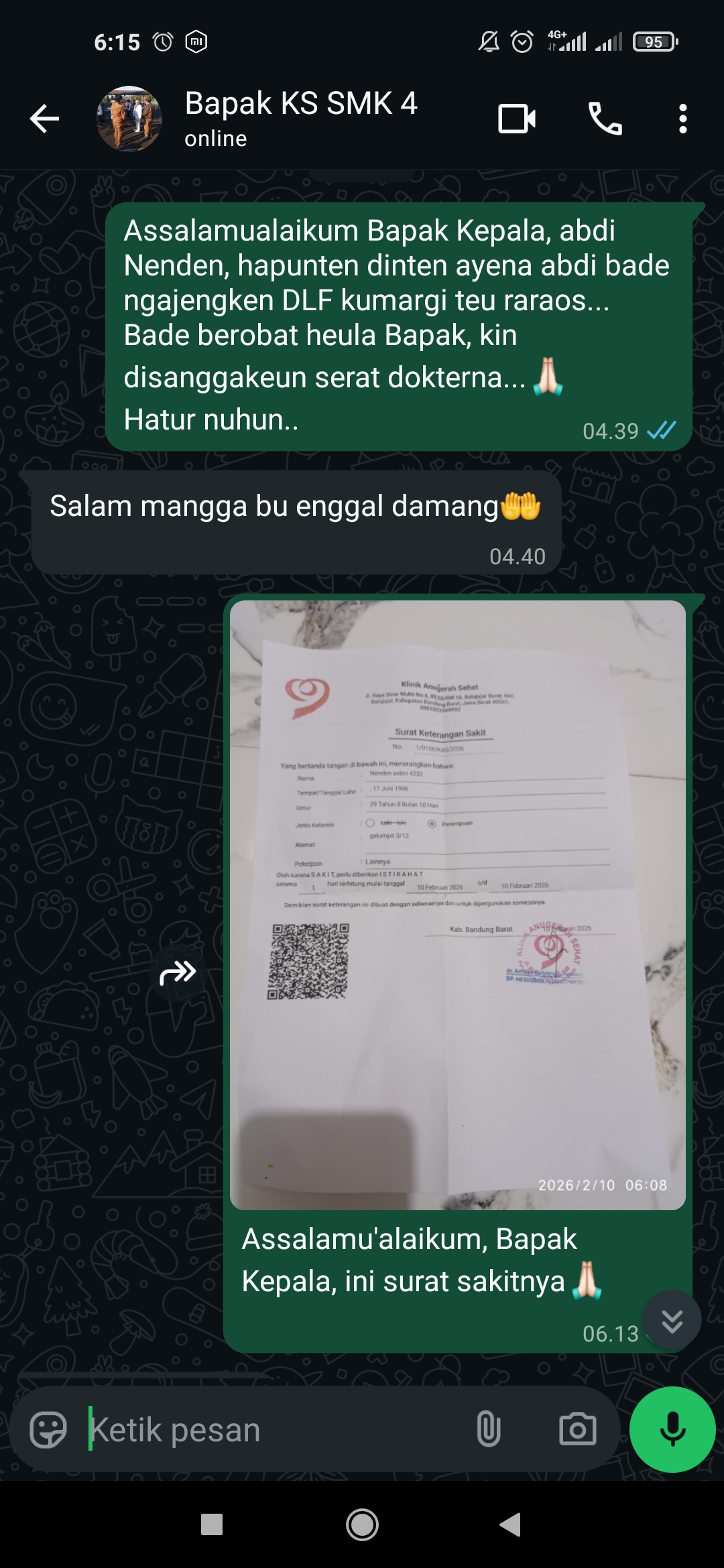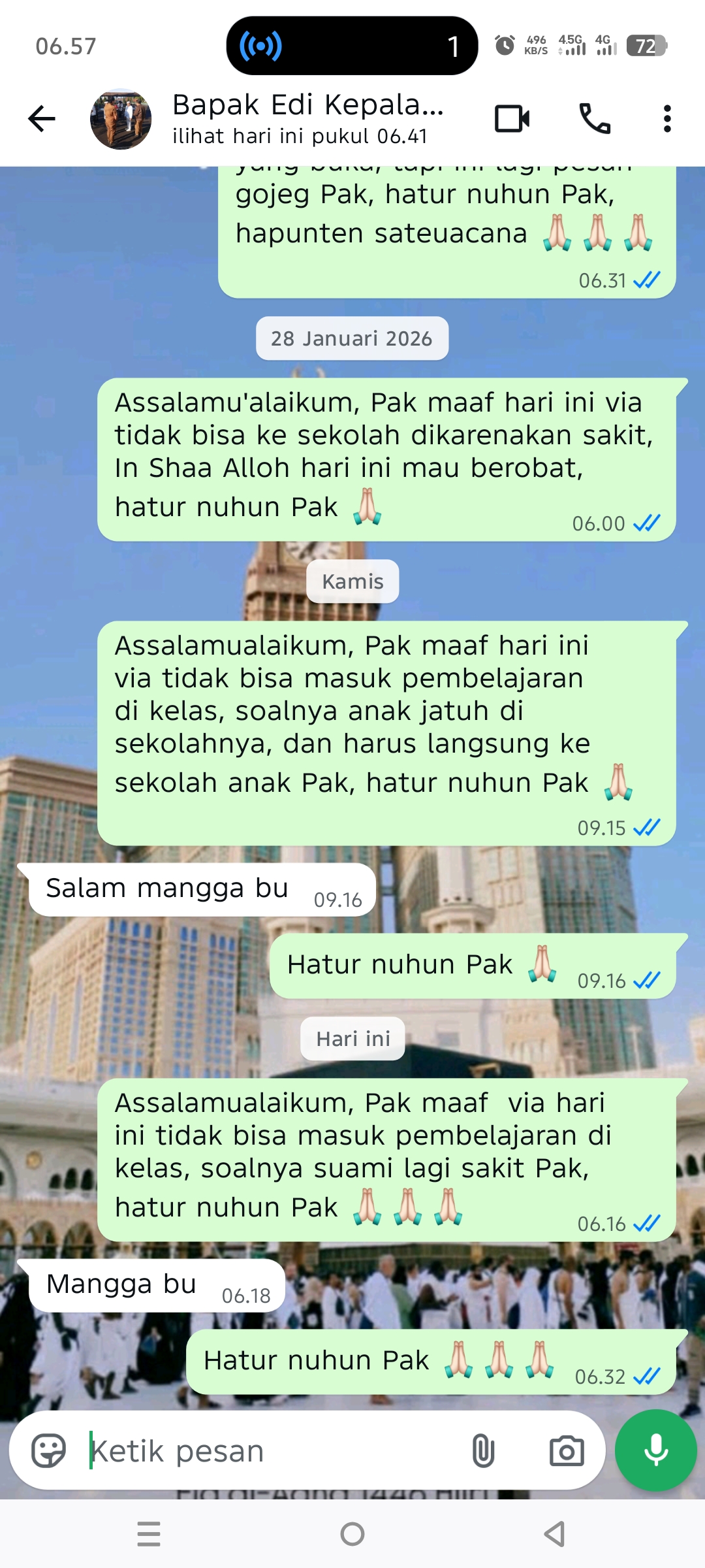 | 2026-02-05 | Silvia | Kamis | Jam 6 | X BR C | Izin Kepsek | Lihat |